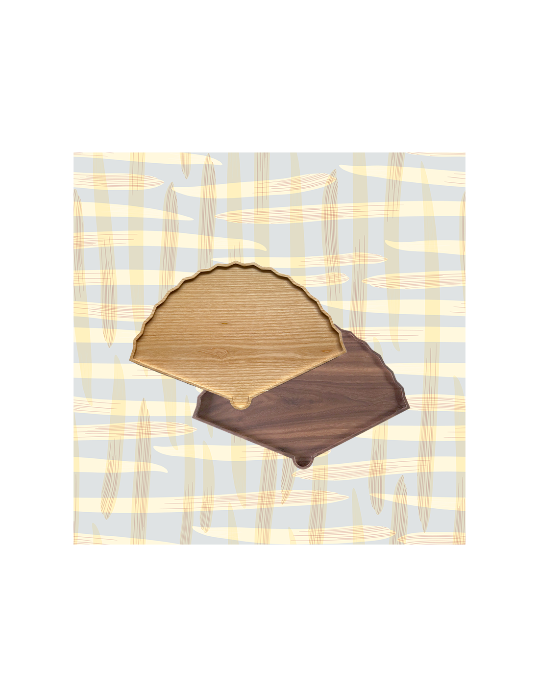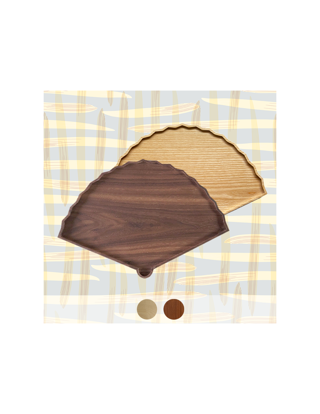 The elegant fan is a traditional pattern of Asia, available either in maple or walnut wood
