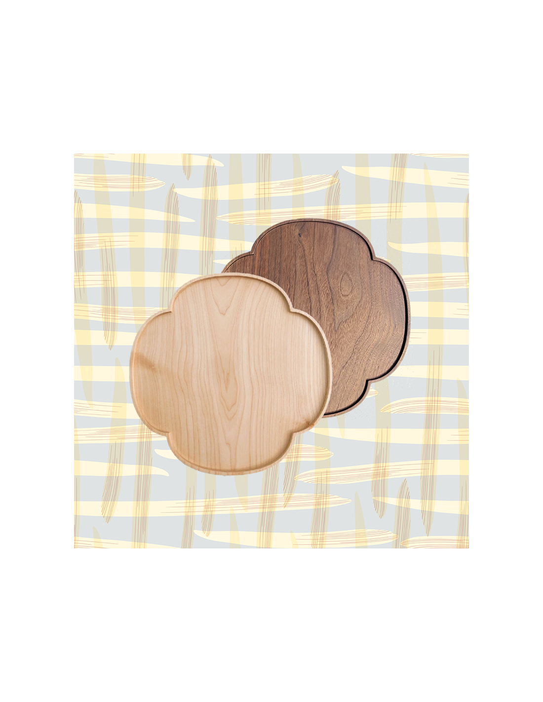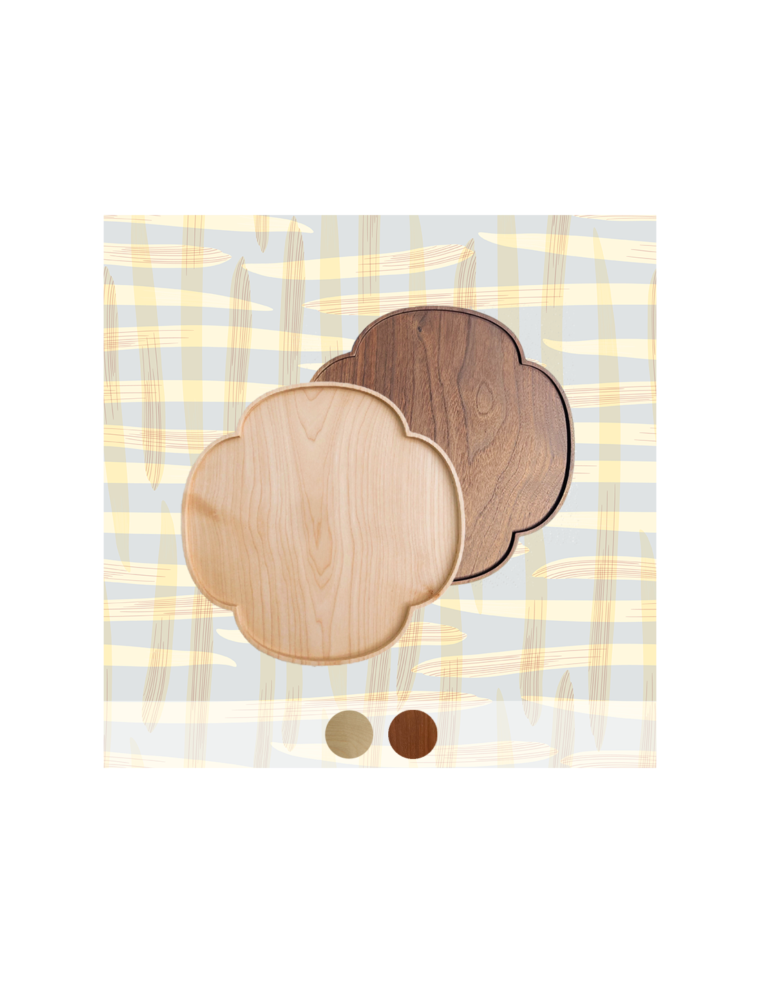 Un plateau plutôt sage en forme de trèfle, en érable ou noyer massif