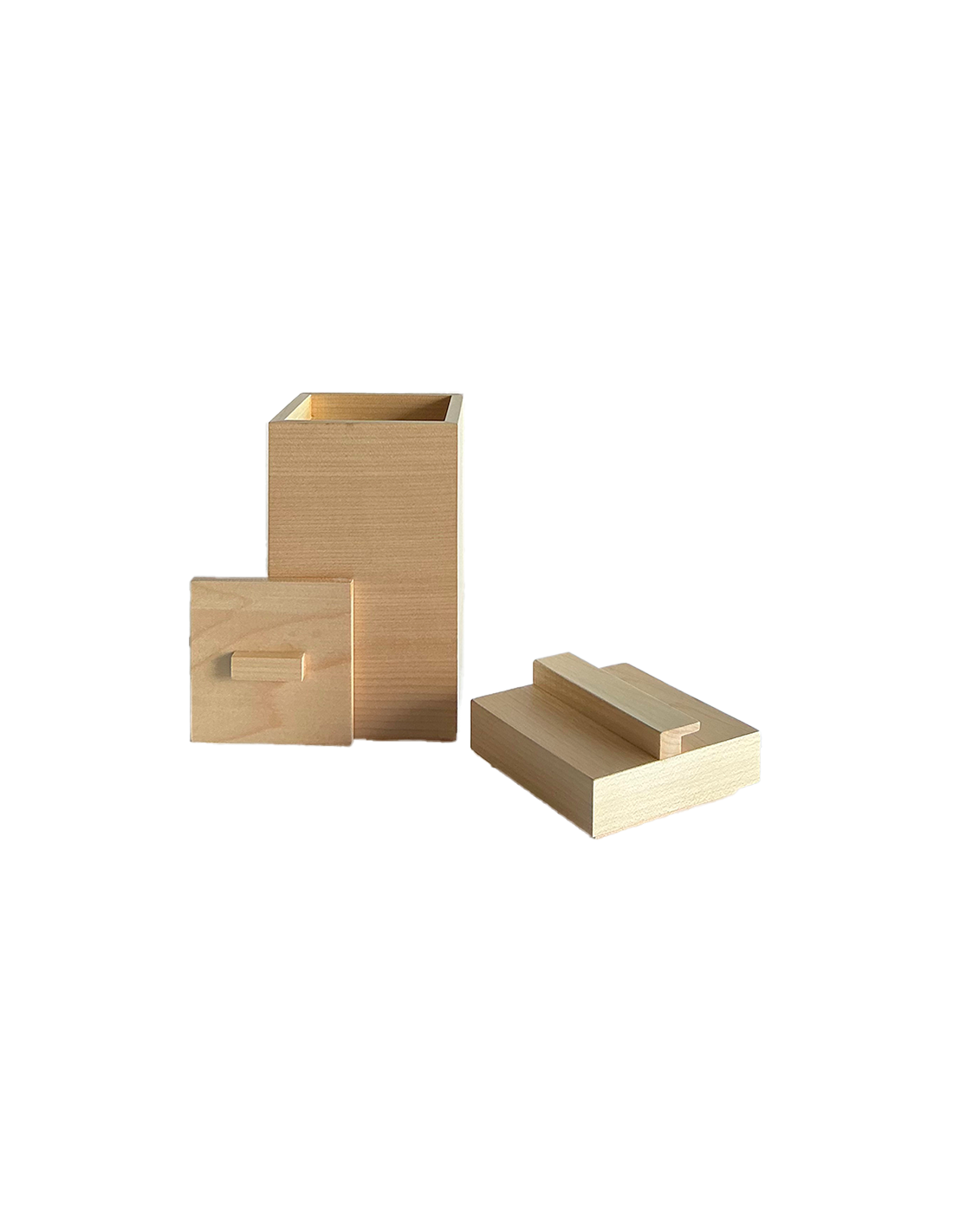 Une boite à thé au design audacieux, unie ou bicolore, en érable et noyer en bois massif non traité, à double couvercle à la contenance confortable : de 150 à 180 grammes de thé.